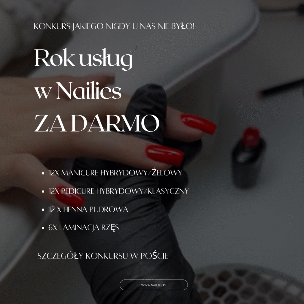 KONKURS JAKIEGO JESZCZE U NAS NIE BYŁO!  Bo jesień to idealny moment, by zadbać o siebie z Nailies. Wygraj roczny pakiet manicure, pedicure, henny pudrowej i laminacji rzęs!
